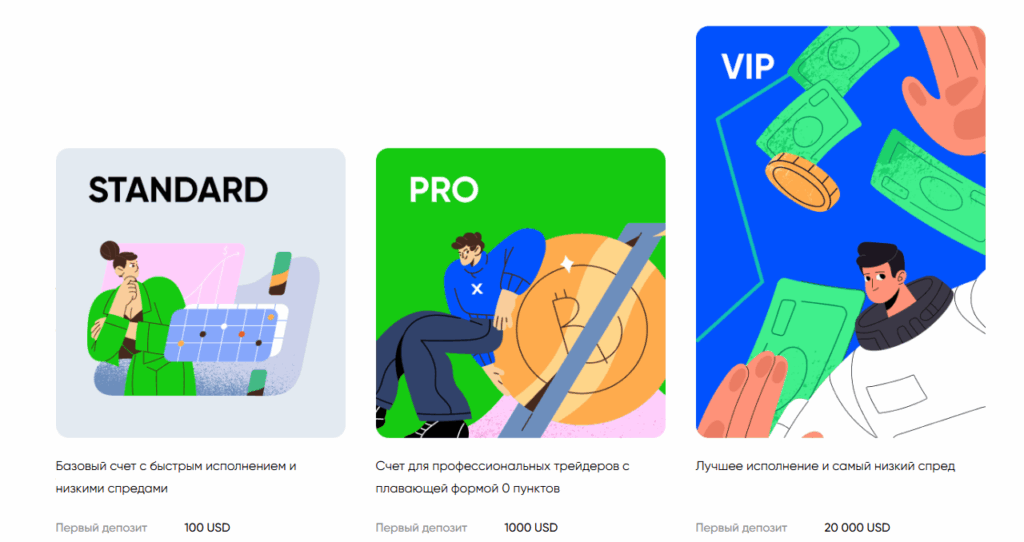 1. Standard — мин. депозит $50, спред от 1.5 пунктов